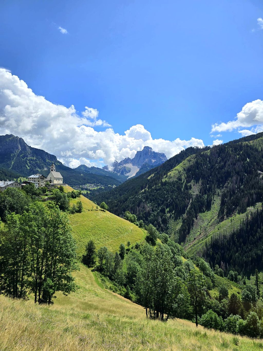 To było nasze czwarte podejście do trasy Sella Ronda, bo zawsze pogoda krzyżowała nam plany. Tym razem było idealnie, no może nie licząc tego, że na początku musieliśmy wyprzedzić setki rowerzystów, trenujących do niedzielnych zawodów, co nie pozwoliło w pełni cieszyć się zakrętami.